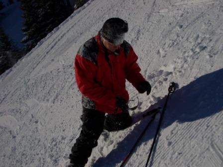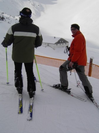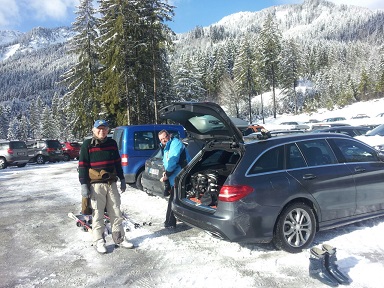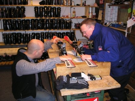 Los gings mit einer kleinen Inspektion an Holger´s neuen Völkl-Carvern. Bindung war falsch montiert !!!!
