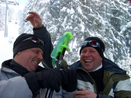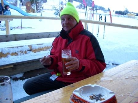 Nach einem zünftigen Frühschoppen verlor Ingo auf der Piste das Gleichgewicht und....................
