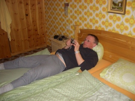 Der erste Tag ist am schwersten: Verschlafen, geblitzt und dann Schnee "gefressen"........, na dann, Prost Dieter !